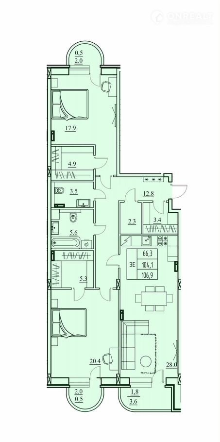 Общая площадь 106.9 м2