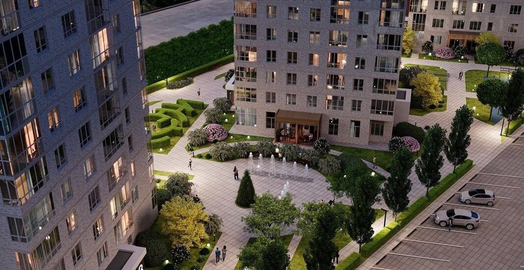 Большая часть квартир предлагает великолепный вид на город благодаря нелинейной посадке домов, что исключает «окна в окна».