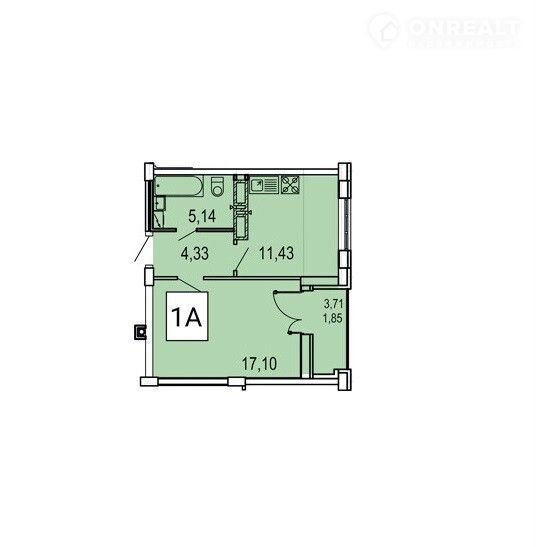 Жилая площадь 17.1 м2