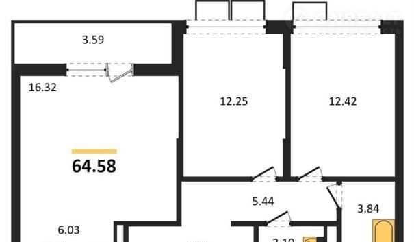 Общая площадь 64.6 м2
