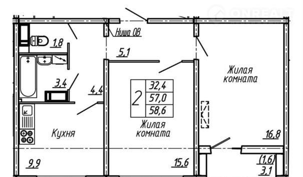 Общая площадь 58.6 м2