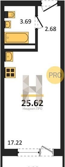 Квартира студия, 25.6 м2, этаж 10 / 17, на продажу в Воронеже