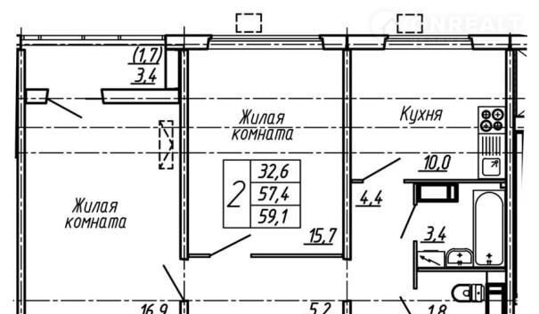 2-комнатная квартира, 59.1 м2, этаж 19 / 19, на продажу в Воронеже