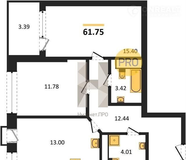 Общая площадь 61.8 м2