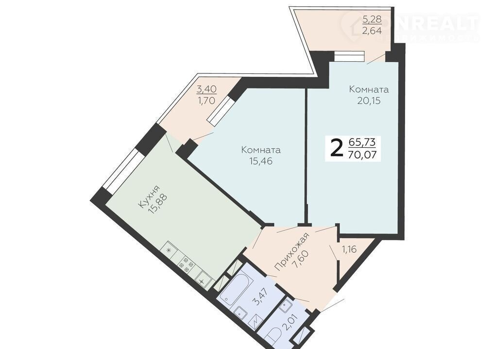 Общая площадь 70.1 м2