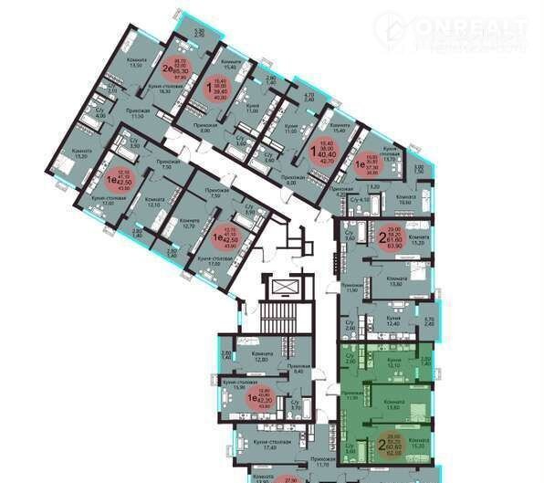 Общая площадь 60.6 м2