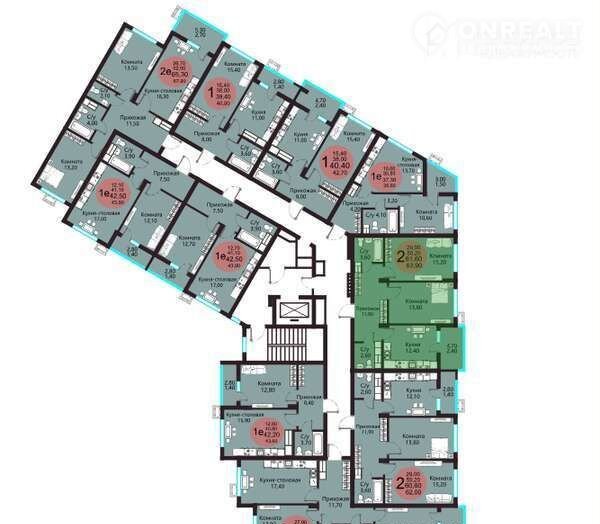 2-комнатная квартира, 61.6 м2, этаж 4 / 9, на продажу в Воронеже