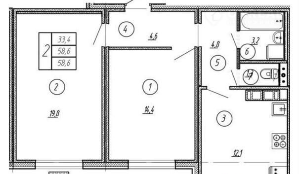 Общая площадь 59.4 м2