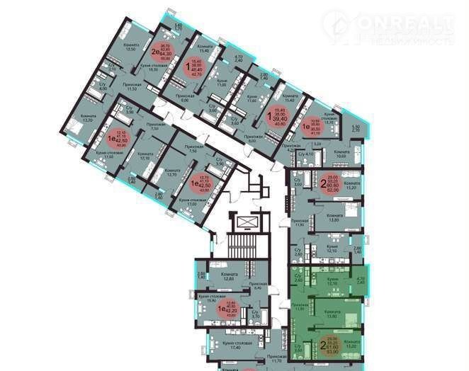 2-комнатная квартира, 61.6 м2, этаж 8 / 9, на продажу в Воронеже