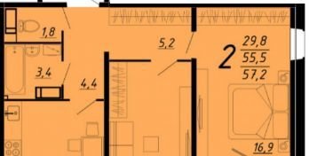 Общая площадь 57.2 м2