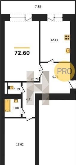 Общая площадь 72.6 м2