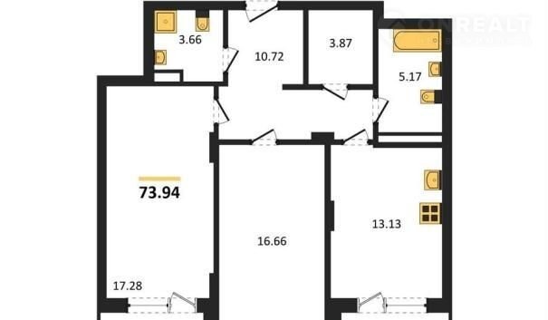 Общая площадь 73.9 м2