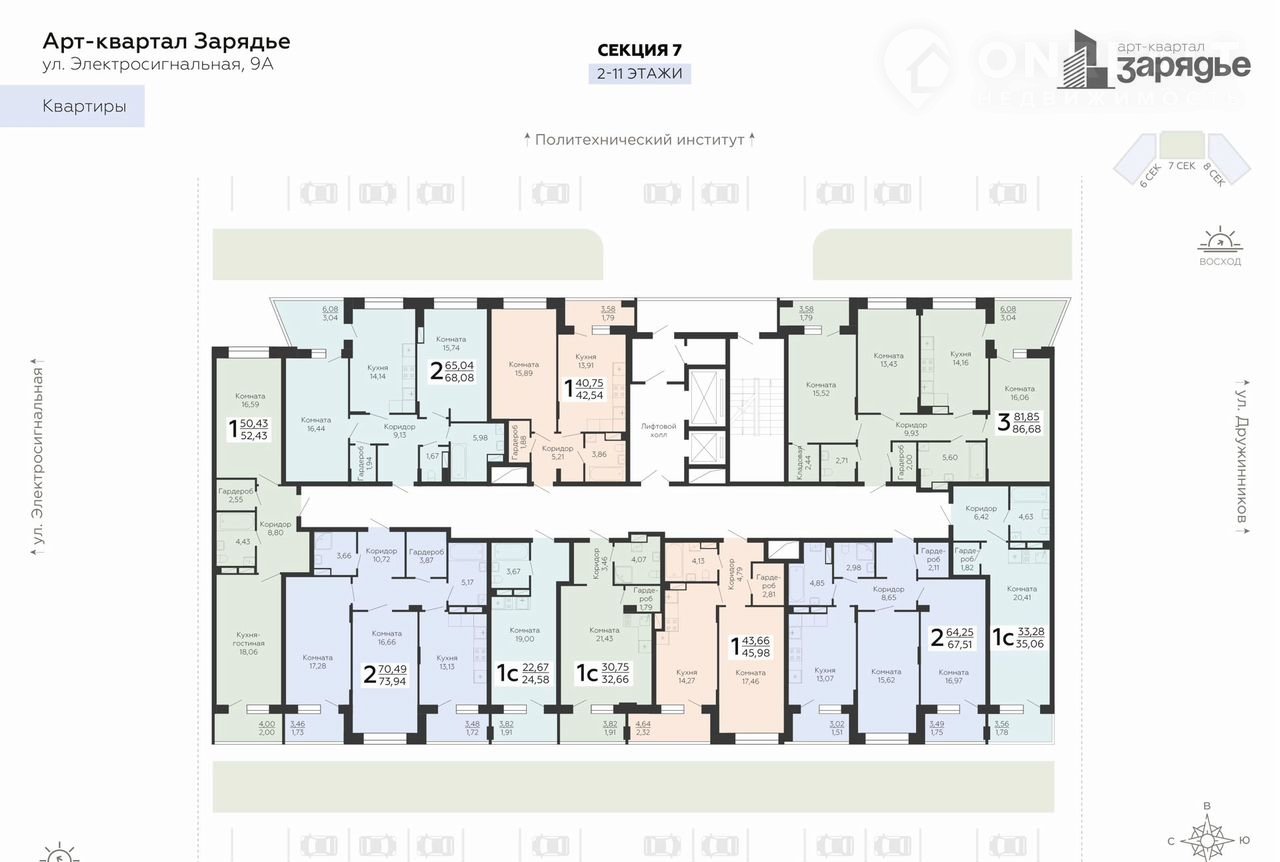 2-комнатная квартира, 67.5 м2, этаж 7 / 24, на продажу в Воронеже, Электросигнальная улица, 9Ак1