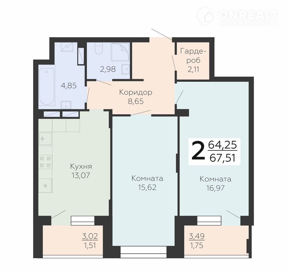 Общая площадь 67.5 м2