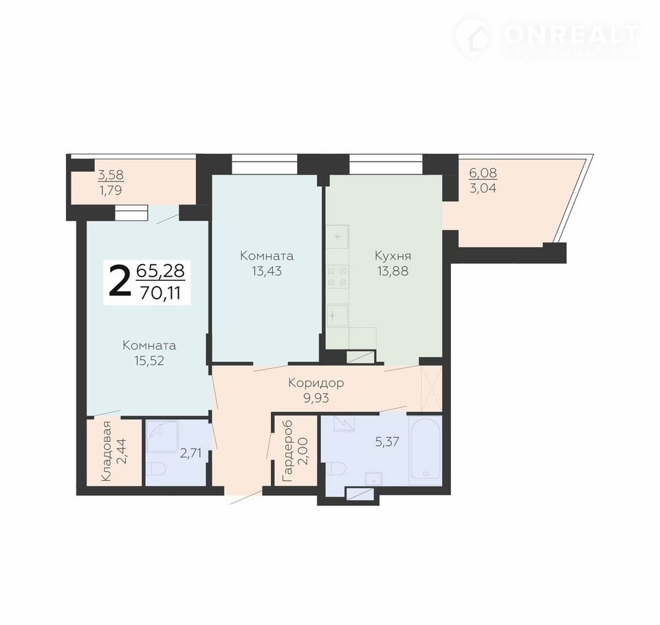 Общая площадь 70.1 м2