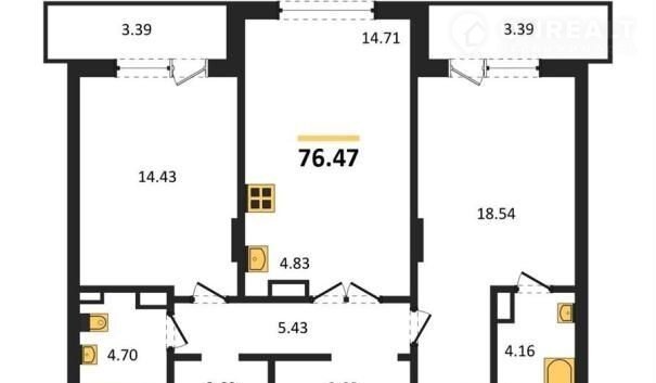 Общая площадь 76.5 м2