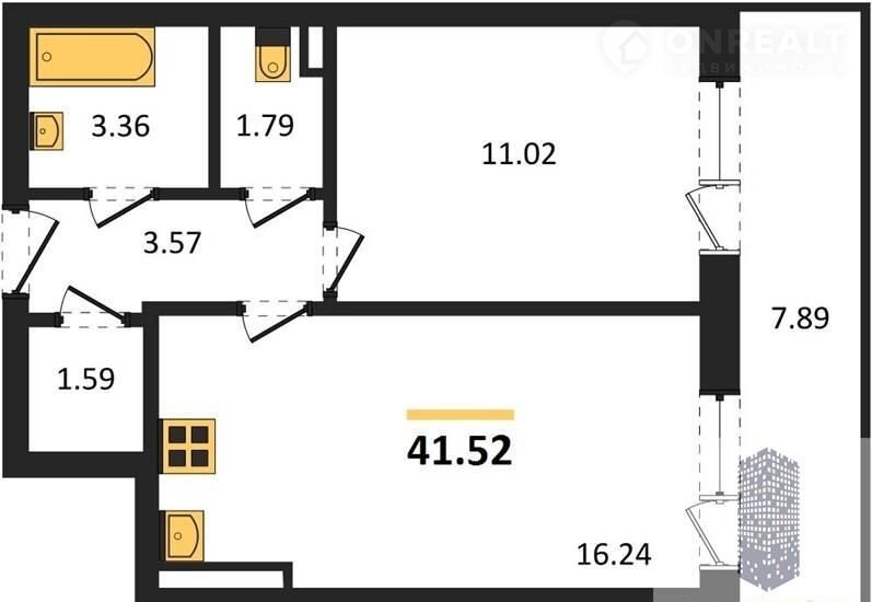 1-комнатная квартира, 41.5 м2, этаж 16 / 19, на продажу в Воронеже, Ленинградская улица, 118А