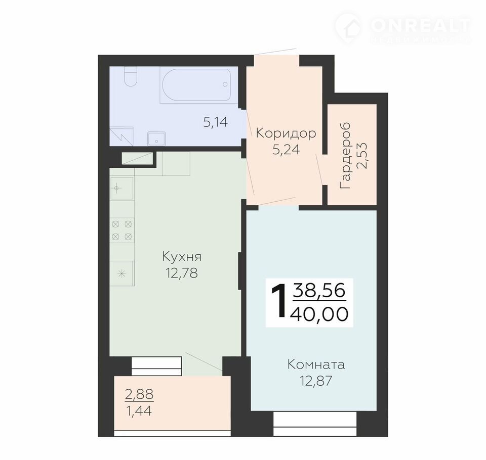 Общая площадь 40 м2