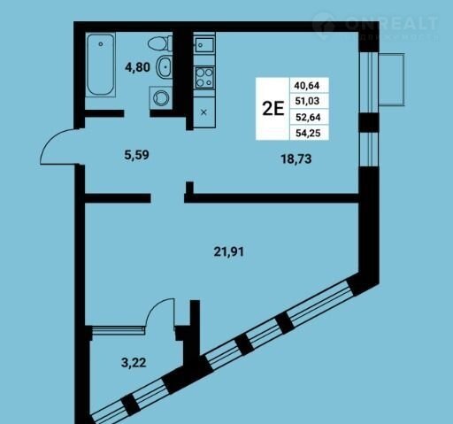 Общая площадь 54.3 м2