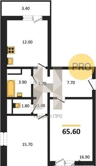 Общая площадь 65.6 м2