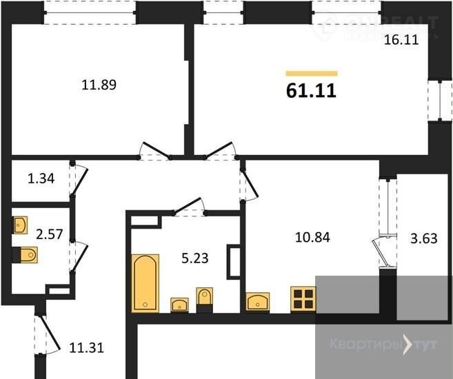 Общая площадь 61.1 м2