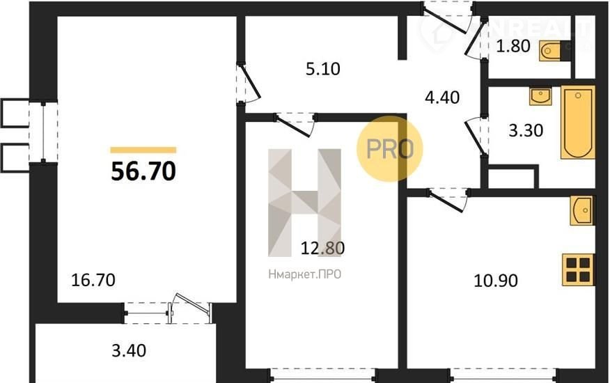 Общая площадь 56.7 м2