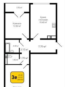 Жилая площадь 45.9 м2