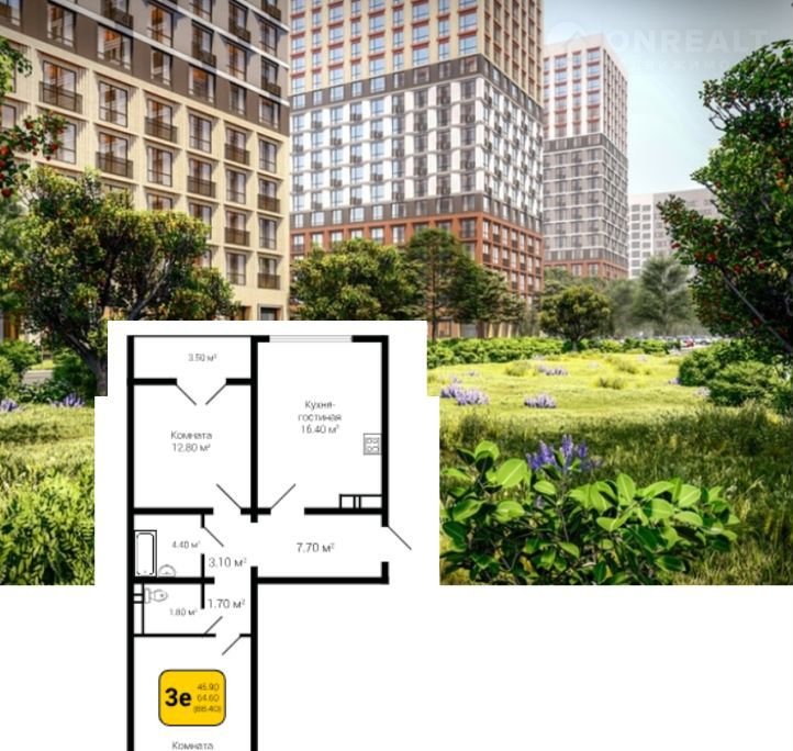 KВАРTИPА ФОРМАТA  3Е - B  ЖК " ЯБЛОHEВЫE САДЫ"  C OTДEЛKOЙ ПОД КЛЮЧ !!!