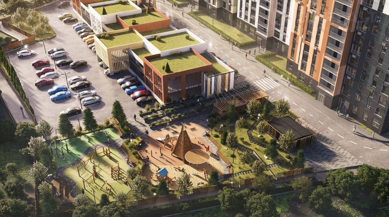 В «Инстеп.Краснознаменная» будет закрытая территория с двухуровневой парковкой во дворе. Для детской площадки предусмотрены игровые комплексы из натурального дерева в эко-стиле с большими горками. Во дворе новостройки будет трехуровневое освещение и гирлянды над пешеходным тротуаром.