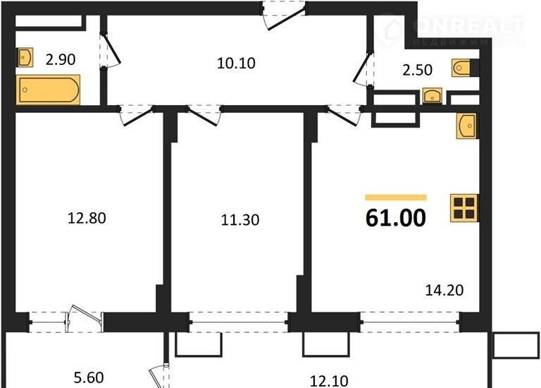 Общая площадь 61 м2