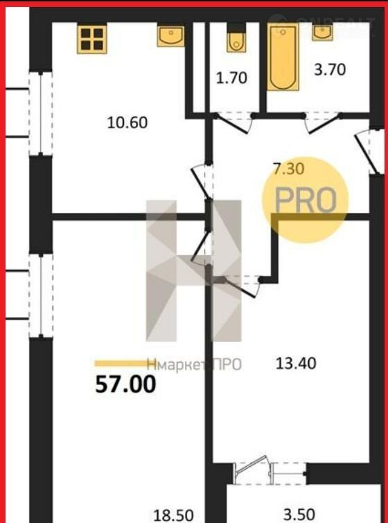 Общая площадь 57 м2