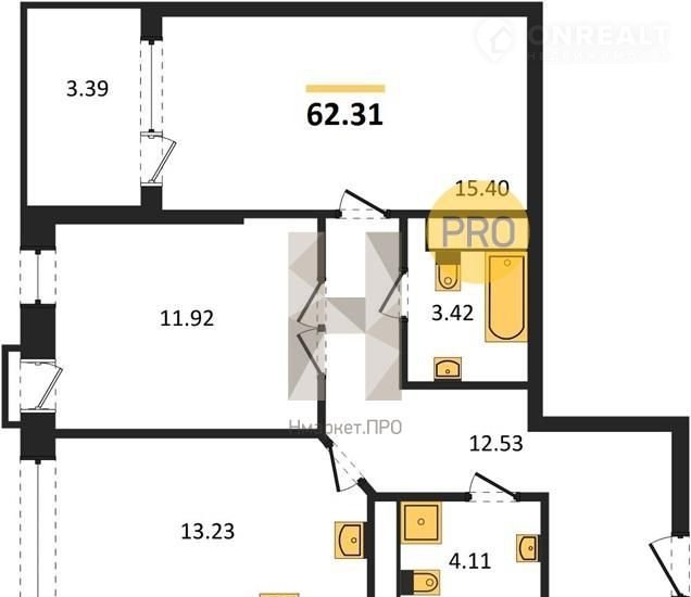 Общая площадь 62.3 м2