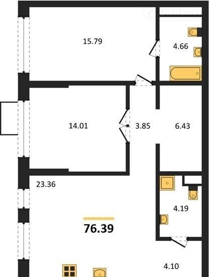 Общая площадь 76.4 м2
