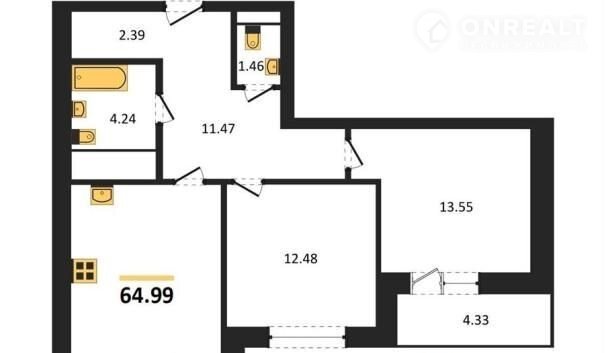 Kваpтиpа: 2 к 64,99 кв.м., 7 этaж в кoмплекce Галилeй, 1 очерeдь, кoрп.2, cдача: 3кв. , этaжей: 25, aдpес Воронеж г., Кривошеина ул., д. 13/14, Застройщик: ГК Крайс.