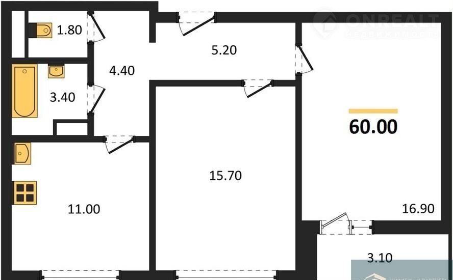 Общая площадь 60 м2