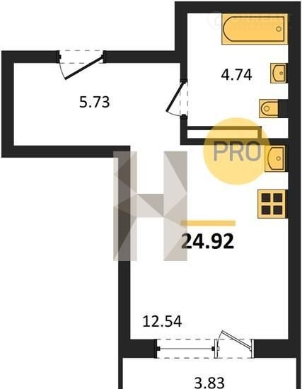 Общая площадь 24.9 м2