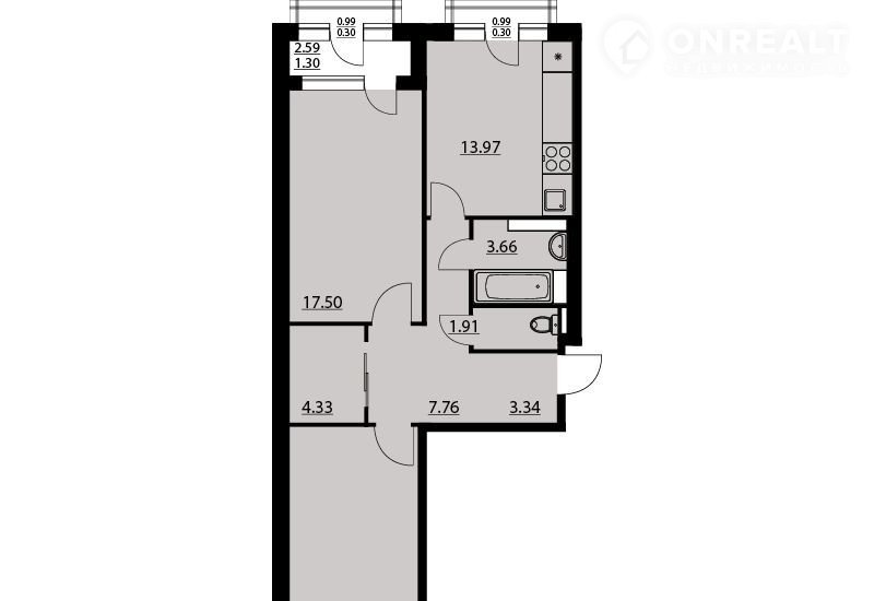 Количество комнат 2