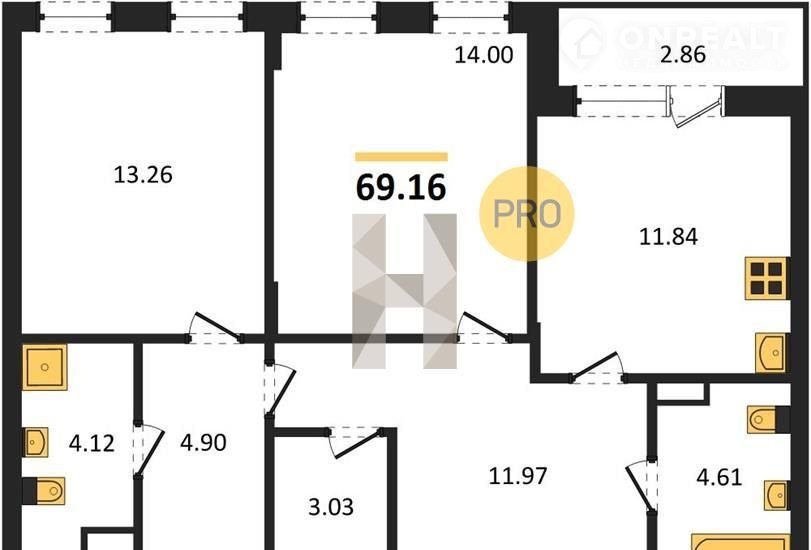 Общая площадь 69.2 м2