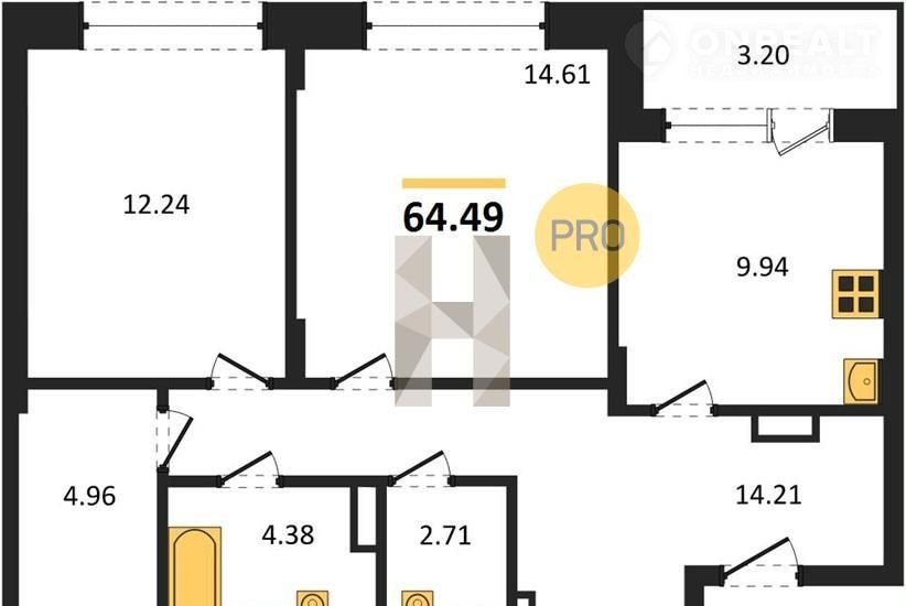 2-комнатная квартира, 64.5 м2, этаж 3 / 16, на продажу в Воронеже