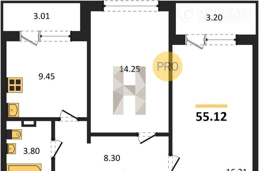 2-комнатная квартира, 55.1 м2, этаж 18 / 24, на продажу в Воронеже