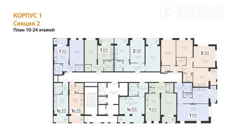 Квартира: 2 к 55,12 кв.м., 18 этаж в комплексе Метрополь, 1 очередь, корп.1, сдача: 3кв. , этажей: 24, адрес Воронеж г., Березовая Роща ул., д. 1с, Застройщик: Развитие.