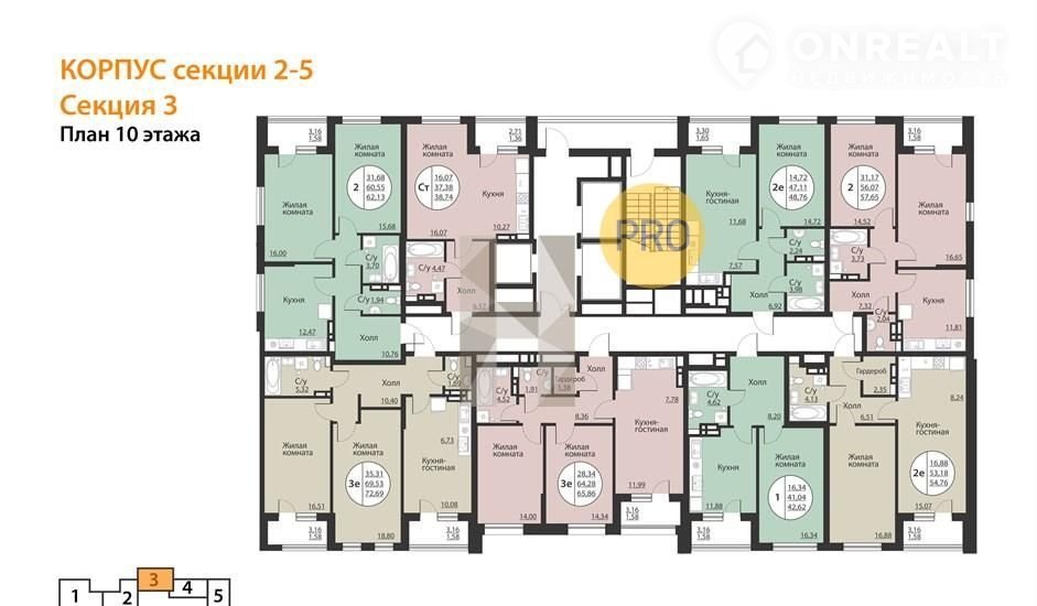 Квартира: 2 к 72,69 кв.м., 10 этаж в комплексе Бунин, 4 очередь, корп.секции 2-5, сдача: 4кв. , этажей: 24, адрес Воронеж г., Московский пр., д. 138, Застройщик: ВДК.