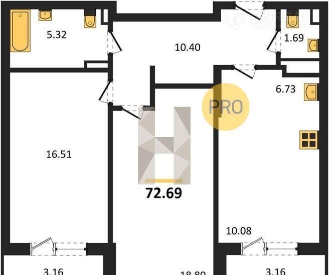 2-комнатная квартира, 72.7 м2, этаж 10 / 24, на продажу в Воронеже, Московский проспект, 138