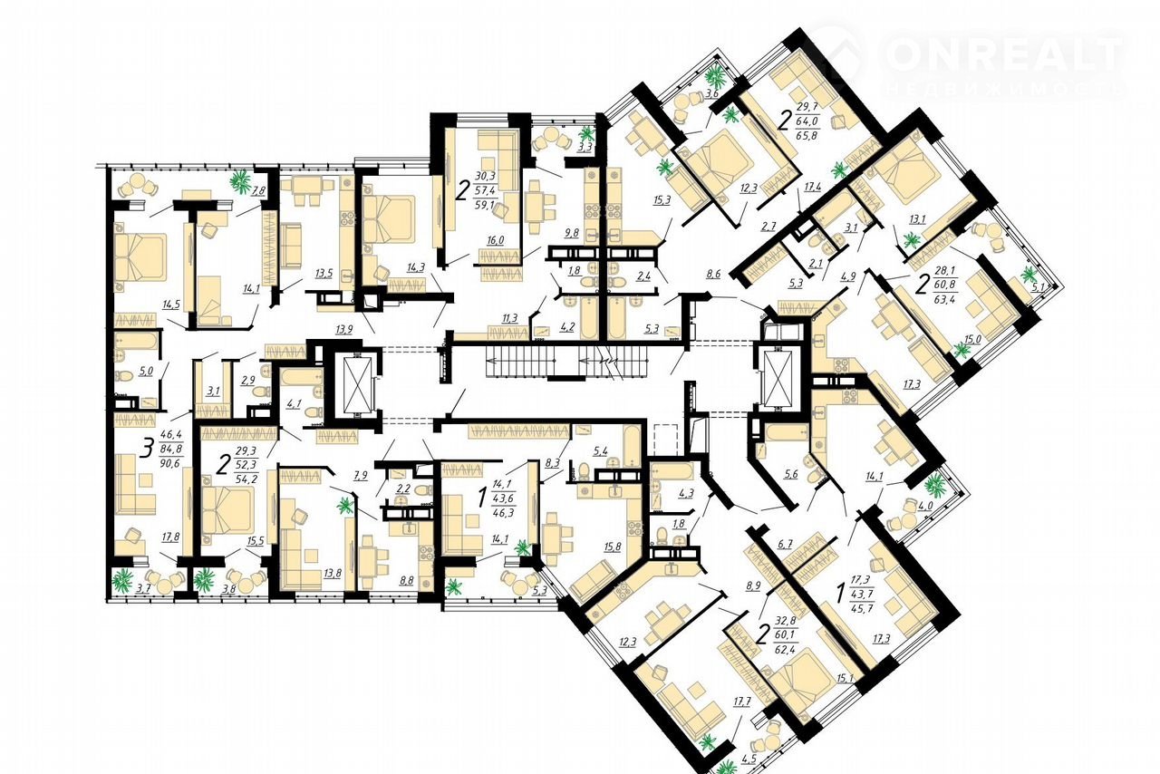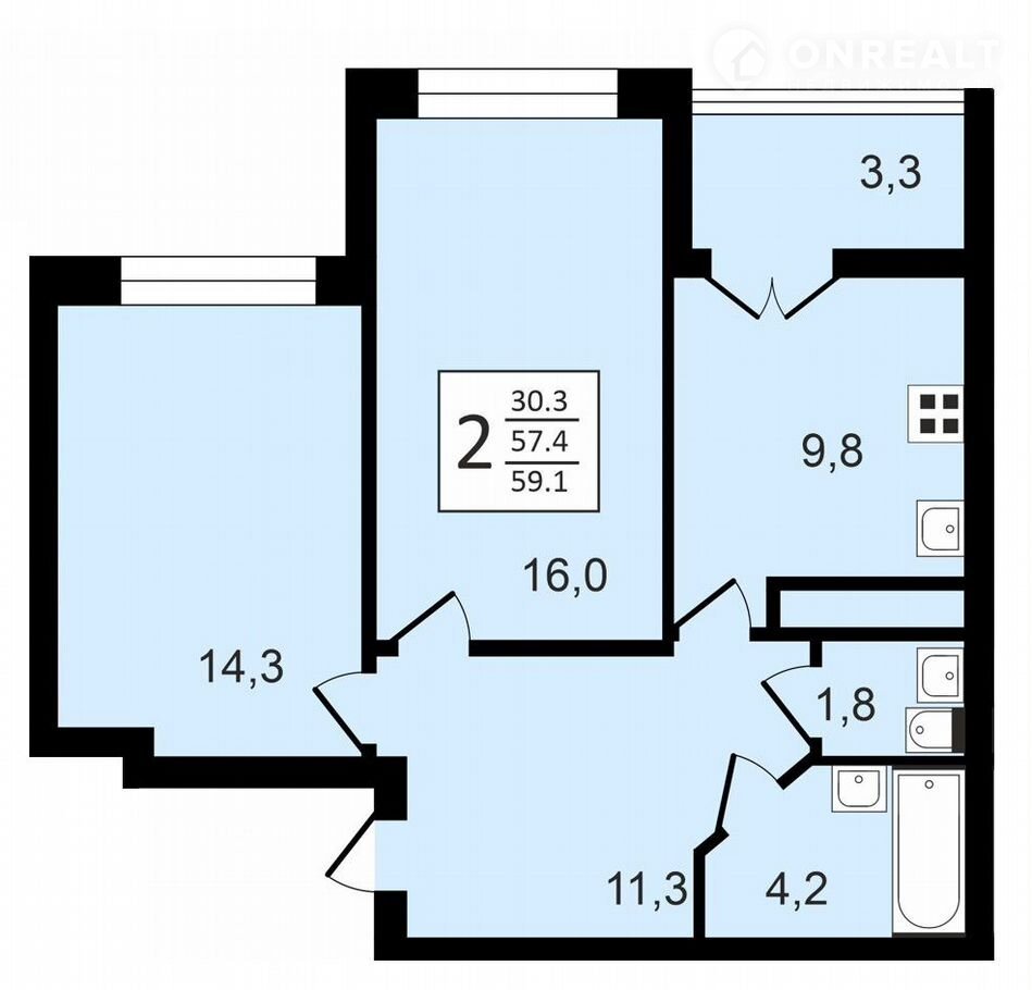 Общая площадь 59.1 м2