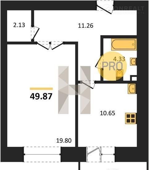 Общая площадь: 49,87 кв.м. Жилая площадь: 19,8 кв.м. Площадь кухни: 10,65 кв.м. Высота потолков составляет 2,68 метра, что добавляет пространству воздуха и света.