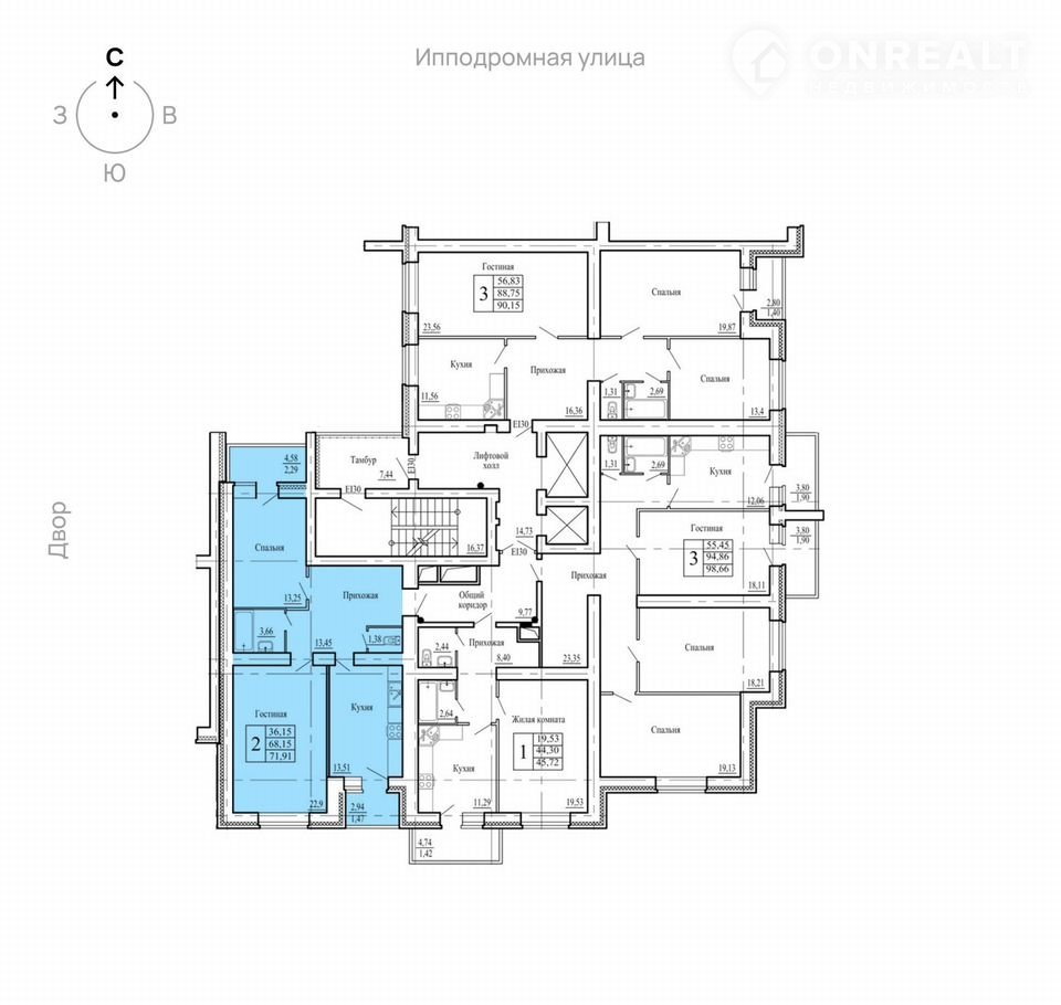 2-комнатная квартира, 72.2 м2, этаж 8 / 16, на продажу в Воронеже, переулок Здоровья, 90Г/1к1