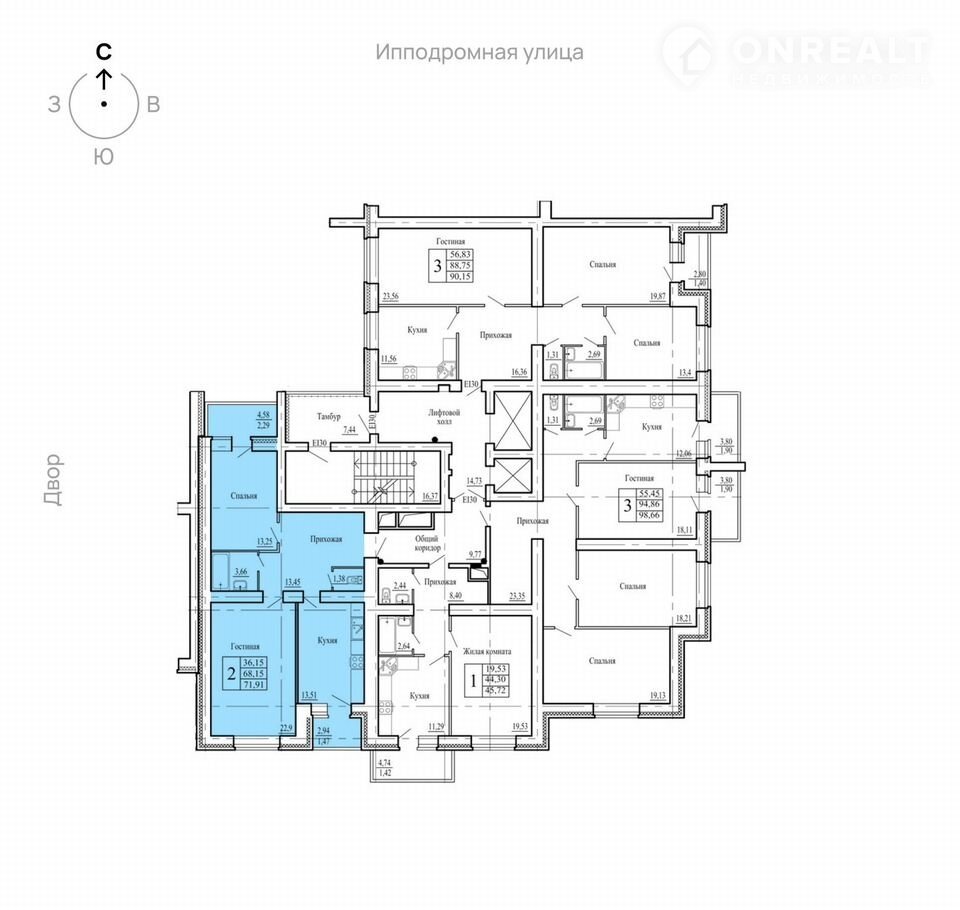 2-комнатная квартира, 72.2 м2, этаж 13 / 16, на продажу в Воронеже, переулок Здоровья, 90Г/1к1