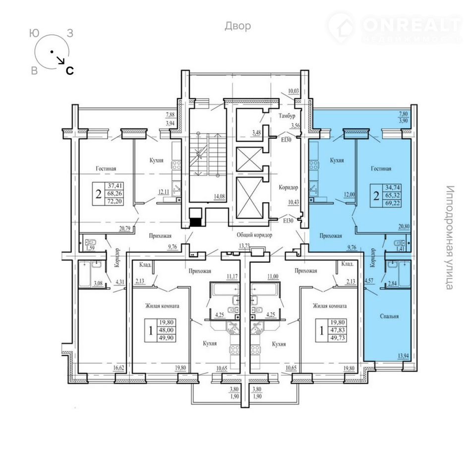 Общая площадь 69.2 м2