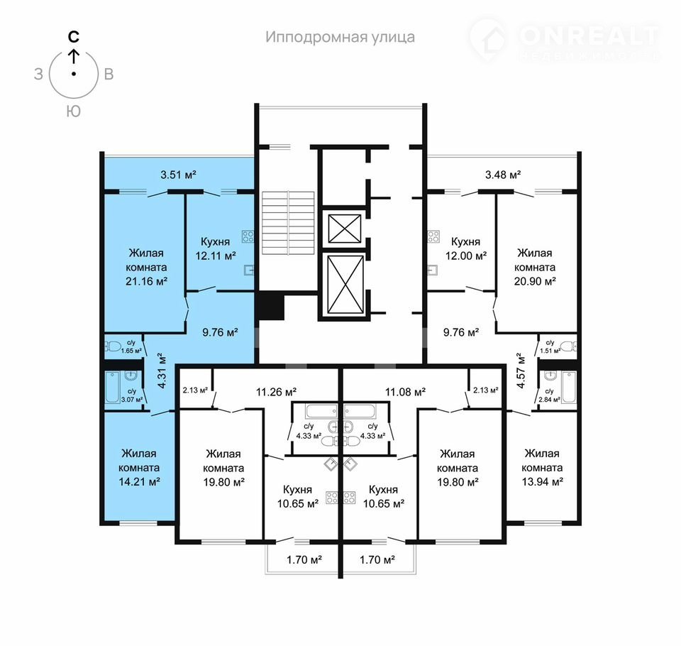 2-комнатная квартира, 69.8 м2, этаж 3 / 14, на продажу в Воронеже, переулок Здоровья, 90Г/1к2