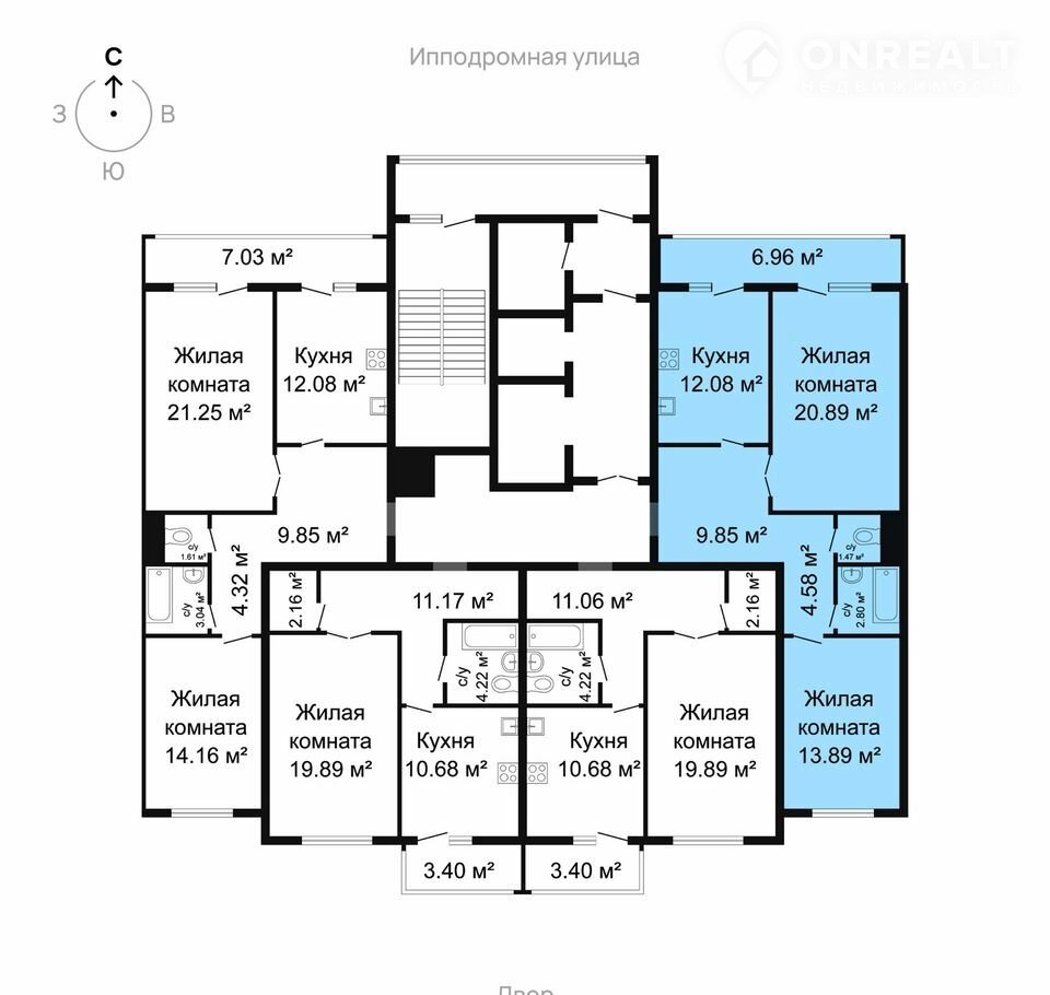 Общая площадь 69.8 м2